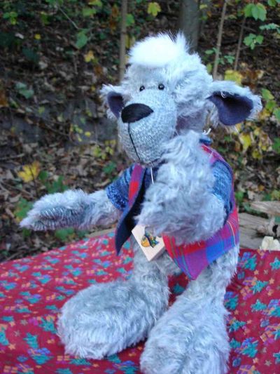 Meine Bären werden aus gutem Schulte-Mohair genäht , haben 5 Gelenke und werden mit Granulat und Fiberfill gefüllt . Mund und Nasen sind gestickt . Schwarze Glasaugen geben den Bären den lieben Gesichtsausdruck . Alle meine Bären lächeln .........mag keine grimmigen Bären .